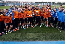 El madridista acudió al entrenamiento del equipo con el premio, que compartió con todo el equipo.