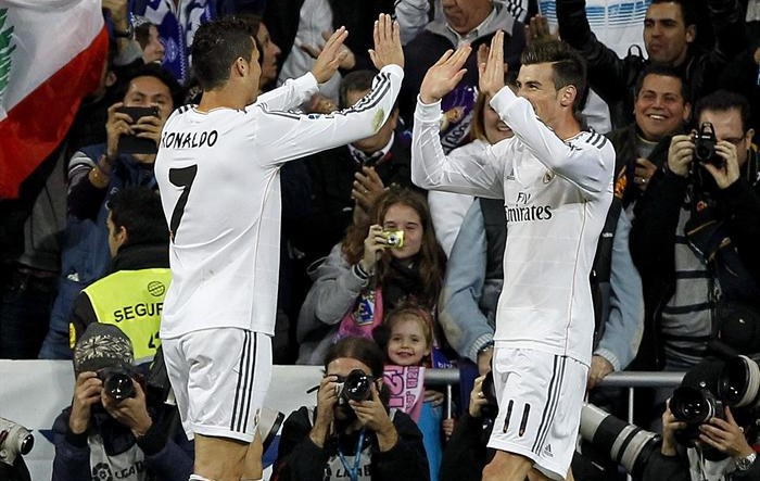 Alineación del Real Madrid: Iker Casillas, Arbeloa, Pepe, Sergio Ramos, Marcelo, Illarramendi, Modric, Di María, Bale, Cristiano Ronaldo y Benzema.