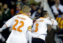 Mathieu celebra el gol con Rubén Vezo. | EFE
