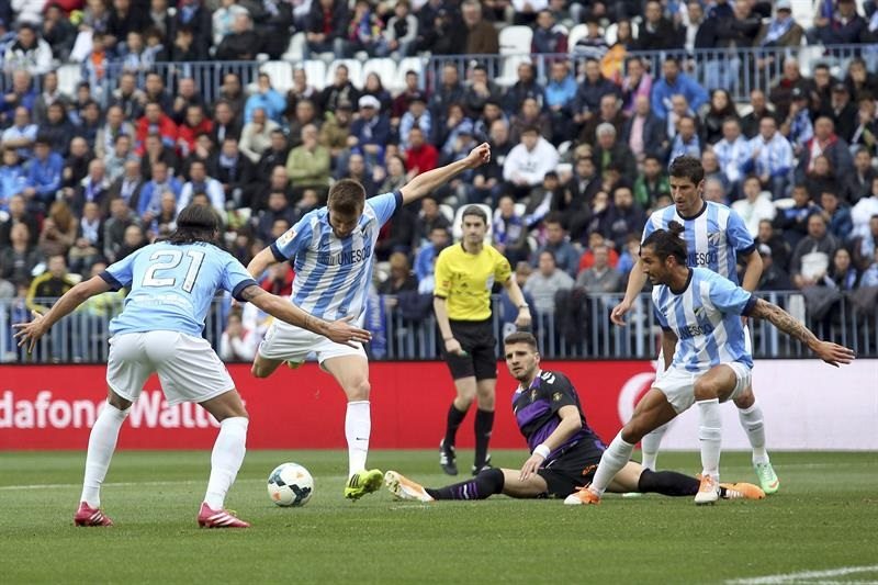 El partido deambulaba sin sentido, con muchos nervios en el Málaga, impreciso, presionado y con pocos recursos más que a balón parado. Santa Cruz tuvo la ocasión más clara con otro remate de cabeza que salió pegado al poste izquierdo. El propio Santa Cruz, única referencia ofensiva, volvió a cabecear un centro de Antunes, pero de nuevo se fue fuera. Era el minuto 73 y el Valladolid ni se asomaba por el área malaguista.