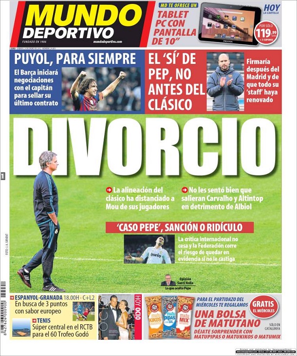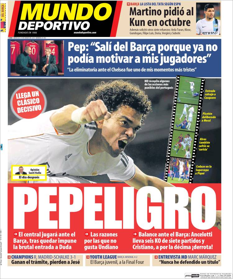 En Barcelona no sentó bien que Pepe acusara a los jugadores del Barça de fingir, por eso Mundo Deportivo le mandó callar.