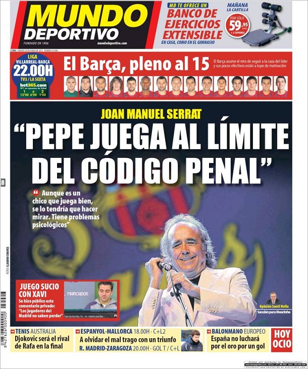 Una entrevista con Joan Manuel Serrat devolvió a Pepe a la portada de Mundo Deportivo.