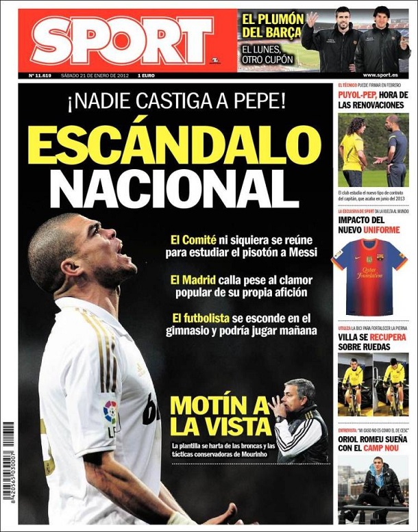 Indignación en el diario Sport por la falta de castigo sobre el portugués por su pisotón a Messi.