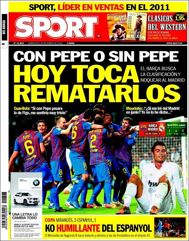 Jose Mourinho fue también el balnco de las críticas del diario catalán junto a su compatriota.