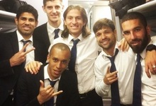 Los jugadores del atlético, en el AVE de vuelta de Sevilla. | @FilipeLuis03