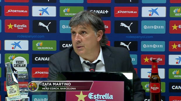 El Tata Martino, técnico del Fc Barcelona, lamenta que tras el partido que enfrentó a los azulgranas con el Espanyol, se hable más de la actuación arbitral que de fútbol.