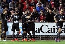 Los jugadores del Levante celebran el primer gol de David Barral.