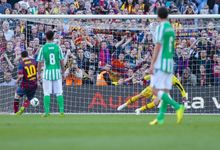 Messi, en el momento de lanzar un penalti ante el Betis. | Cordon Press