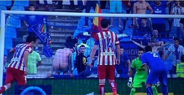 La anécdota de la jornada en la Liga BBVA llegó en el Coliséum Alfonso Pérez, en el encuentro entre el Getafe y el Atlético de Madrid. Diego Costa se disponía a lanzar un penalti ante Codina, cuando se vio la imagen de un aficionado enseñando el trasero detrás de la portería para distraerle. Lo cierto es que Costa falló el penalti, aunque finalmente el Atlético se llevó el triunfo.