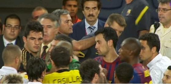 Al final del partido de vuelta de la Supercopa de 2011 entre el Barcelona y el Real Madrid, la tensión entre los dos banquillos estalló después de una dura entrada de Marcelo a Cesc Fábregas. Mourinho aprovechó la tangana que se formó tras la expulsión del brasileño para acercarse al entonces segundo entrenador azulgrana y meterle un dedo en el ojo, a lo que Tito respondió con una colleja. En la rueda de prensa posterior al partido, el técnico portugués aseguró que no sabía quién era Tito.
