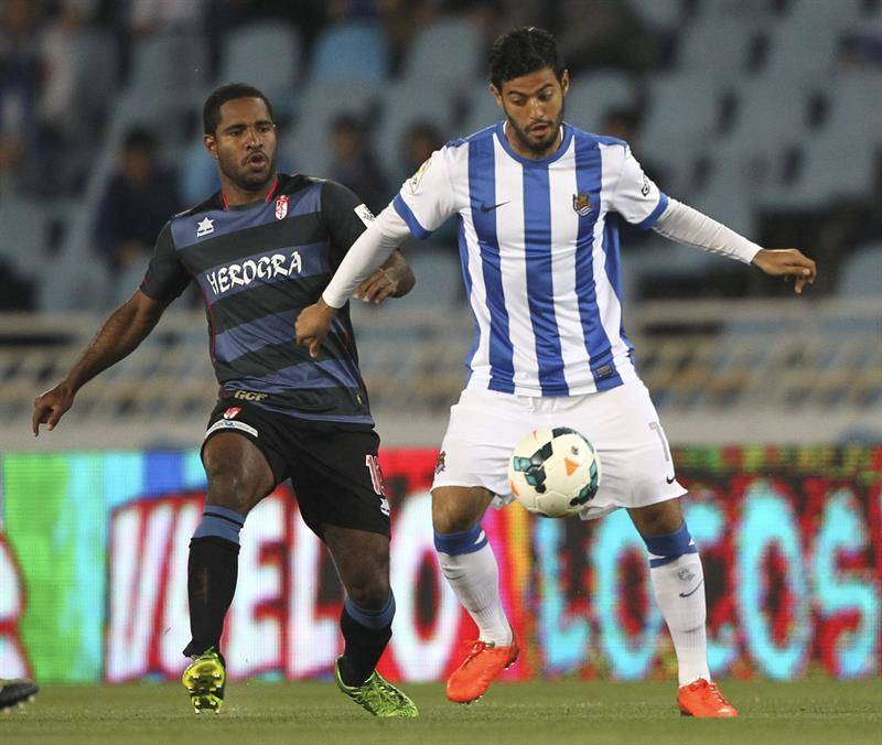Perdonó el Granada a los realistas en un remate casi bajo palos de El Arabi y luego llegaron las jugadas para la polémica, con la protesta y expulsión de Recio e, instantes después, el camino a vestuarios por tarjeta roja al local Mikel González.