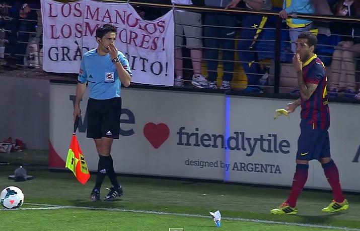 El incidente se registró el 27 de abril en el encuentro Villarreal-Barcelona cuando un espectador lanzó un plátano sobre Alves en el momento en el que este iba a sacar un córner. Tras el lanzamiento, el futbolista cogió el plátano, lo abrió y se lo comió.