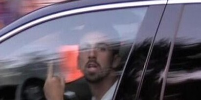 Dani Alves repitió este gesto al montarse en el autobús, aunque aparentemente le dedicó la peineta al fotógrafo del club.