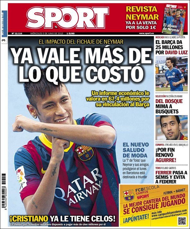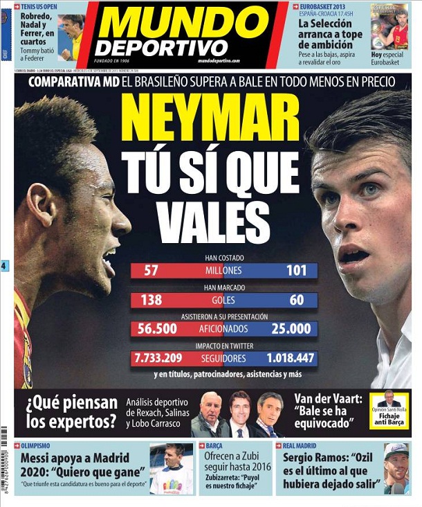 El fichaje del uruguayo por el conjunto azulgrana por 81 millones de euros, un año después de contratar a Neymar, obliga a revisar la hemeroteca sobre lo que se dijo sobre otros grandes fichajes de la Liga como los de Cristiano Ronaldo y Bale por el Real Madrid.