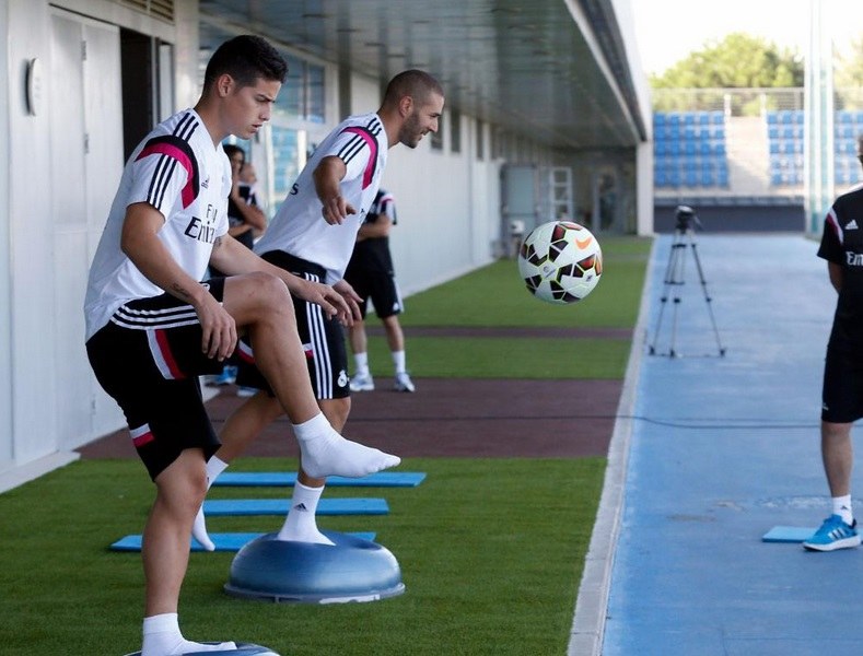 El colombiano James Rodríguez y los franceses Karim Benzema y Raphael Varane ya han completado en la Ciudad Real Madrid el primer entrenamiento de la pretemporada tras regresar de sus respectivas vacaciones.