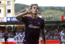 Javi Lara celebra su gol ante la Real Sociedad. | EFE