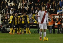 Los jugadores del Atlético celebran un gol en Vallecas. | Cordon Press