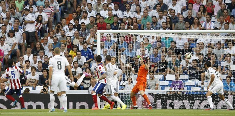 La ira del graderío llegó con el gol del Atlético de Madrid, que, de nuevo, llegó en un saque de esquina como ya sucedió en la final de la Copa del Rey en el Bernabeu, en la final de la Champions League o en la ida de la pasada Supercopa de España. Tiago marcó gol de cabeza, rematando en el área pequeña, estando Iker Casillas bajo los palos.