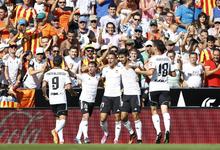 Los jugadores del Valencia celebran el primer gol de Piatti. | EFE