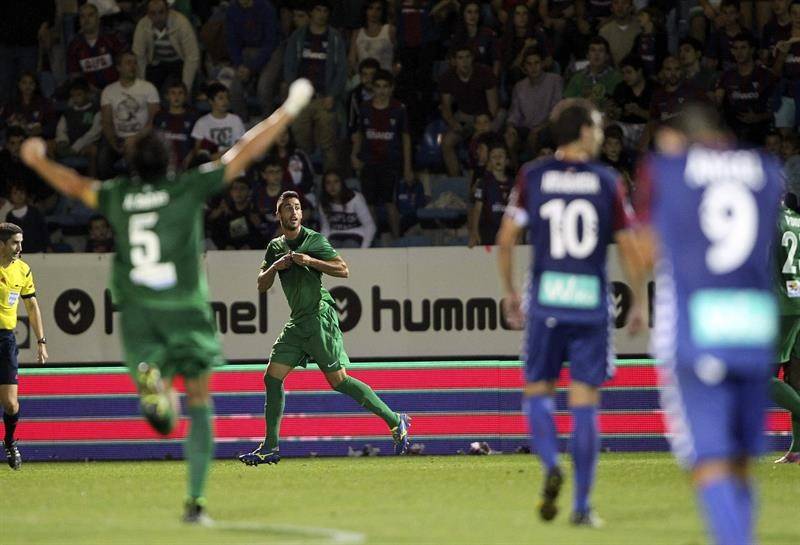 El azulgrana Javi Lara tuvo la oportunidad de empatar, empalmó un balón en el segundo palo y su disparo fue cerca del poste levantinista.