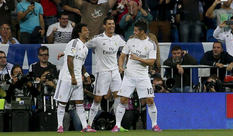 Real Madrid, 5: Casillas; Carvajal, Pepe, Sergio Ramos (Varane, m.46), Marcelo; Kroos (Illarramendi, m.74), Modric, James; Bale, Cristiano Ronaldo y Benzema (Isco, m.80)