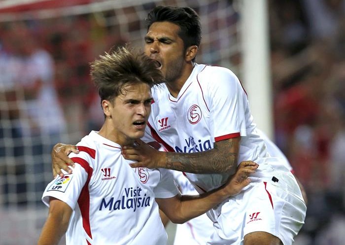 El ataque ya a la desesperada de los sevillistas en los minutos finales también dio sus frutos cuando a falta de dos minutos para que se cumpliera el tiempo reglamentario Denis Suárez devolvió el empate al marcador y Bacca, en el 93, al transformar un penalti que le hizo Giovani al lateral francés Benoit Tremoulinas, puso el increíble 2-1.