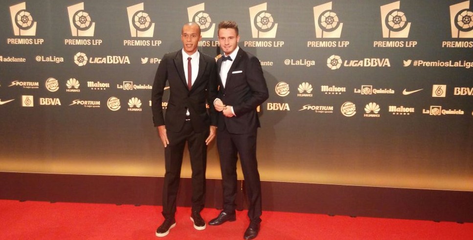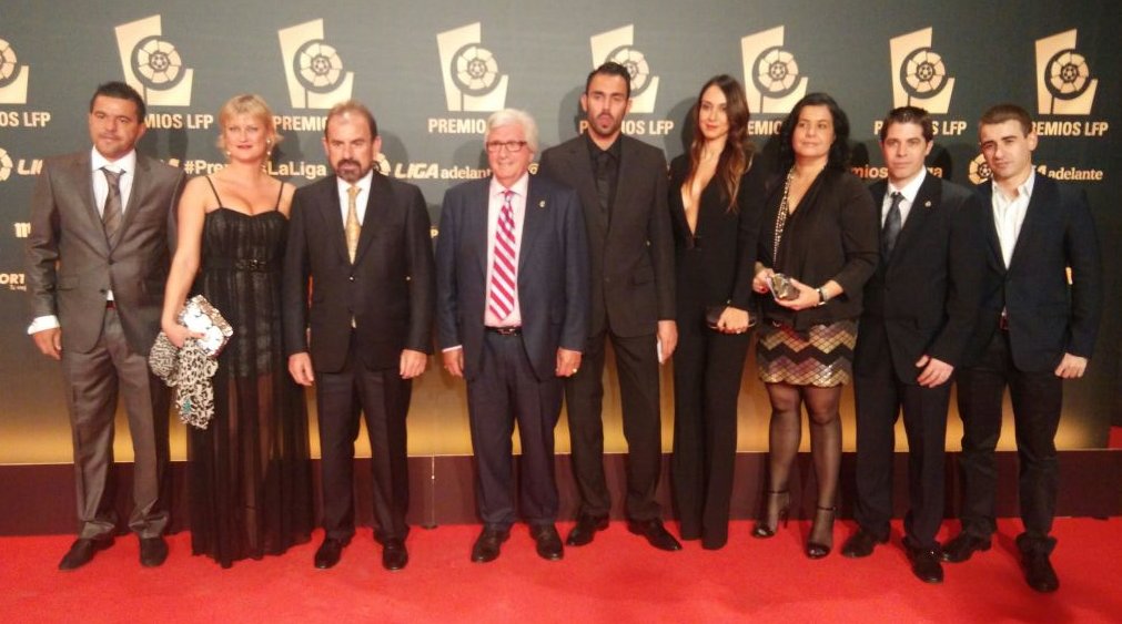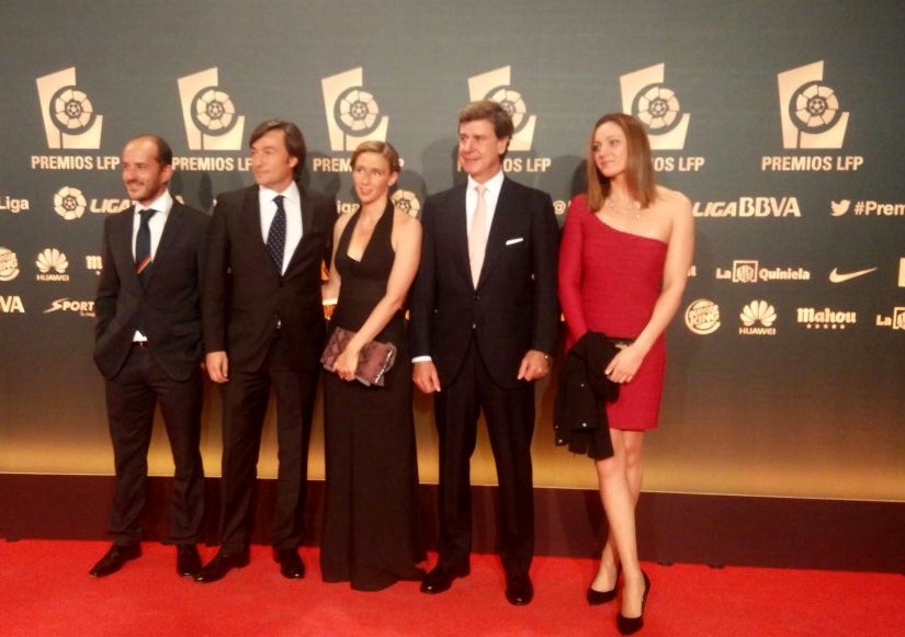 El presidente del Valencia, Amadeo Salvo (2i); el técnico Nuno Espírito Santo (i) y el jugador Dani Parejo (3d) acudieron a la gala.
