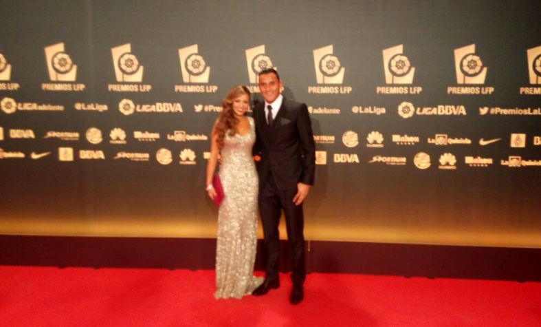El guardameta costarricense del Real Madrid, Keylor Navas, junto a su esposa.
