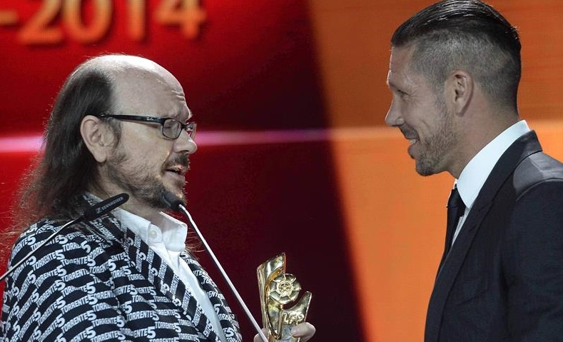 El técnico argentino del Atlético de Madrid fue galardonado con el Premio a Mejor Entrenador de la pasada temporada.