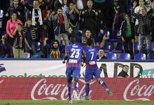 Los jugadores del Eibar celebran el primer tanto conseguido por Mikel Arruabarrena. | EFE