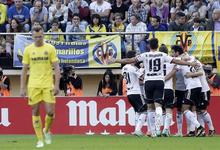 Los jugadores del Valencia celebran el primer gol. | EFE