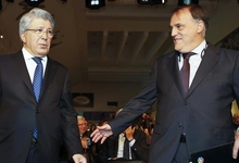 Enrique Cerezo, junto a Javier Tebas en el Vicente Calderón. | EFE