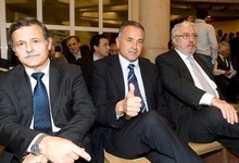 Rafael Gordillo (c), junto a los administradores judiciales José Antonio Bosch (i) y Carlos Ruiz Huidobro. | EFE