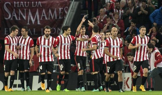 Athletic Club, 3: Iraizoz; De Marcos, Etxeita, Laporte, Balenziaga; Iturraspe, Rico; Susaeta (Beñat, m.68), Viguera, Muniain (Unai López, m.90); y Aduriz (San José, m.82)
