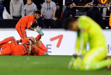 El Barcelona celebra el gol de Busquets, ante un abatido Diego Alves. | EFE
