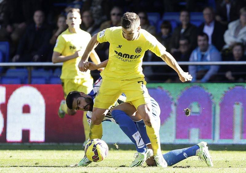 El Deportivo estaba bien plantado sobre el campo, pero le costaba demasiado crear jugadas de ataque. La concentración de los defensas del Villarreal propiciaba que no hubiera ningún resquicio para hacer daño al rival.