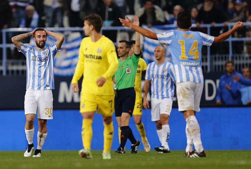 Árbitro: Jaime Latre (Comité Aragonés). Mostró tarjeta amarilla a los malaguistas Samuel García (m. 50), Angeleri (m. 55), Duda (m. 58) y Torres (m. 70), y a los jugadores del Villarreal Cheryshev (m. 9), Víctor Ruiz (m. 29), Trigueros (m. 36) y Gabriel (m. 84).