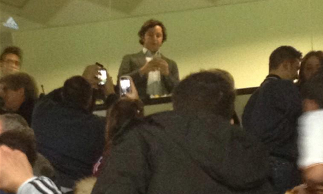 Esta vez, fueron algunos de los asistentes los que captaron su imagen, móvil en mano, en el palco. Según cuentan, se formó un gran revuelo entre los asistentes al encuentro cuando la presencia del joven fue descubierta.
