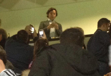 El joven estuvo en el palco del Bernabéu, desde donde le tomaron varias fotos que enseguida comenzaron a circular por las redes sociales.