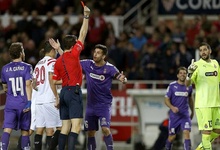 Momento en que el árbitro González González expulsa a Kiko Casilla (d). | EFE