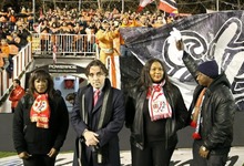 El presidente del Rayo, Raúl Martín Presa, junto a los tres hijos de Wilfred. | EFE