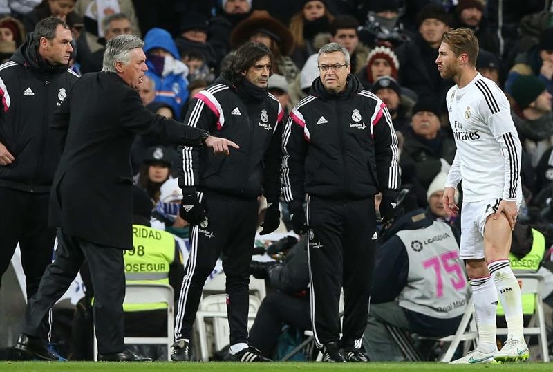 El primero en quedarse fuera fue Sergio Ramos, que pidió el cambio en el minuto 8 tras notar molestias en la parte posterior del muslo izquierdo, la misma que se lesionó en el Mundial de Clubes. Este jueves será sometido a una resonancia magnética, pero todo apunta a que no podrá estar ante el conjunto rojiblanco, por lo que Varane se queda como único central puro, ya que Pepe también está lesionado. Nacho entró en lugar del de Cama y será también titular en el Calderón.