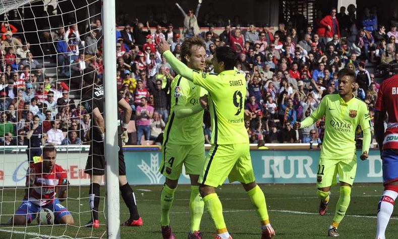 Después de su triunfo ante el Manchester City en la Champions, los culés jugaron a medio gas en el maltrecho césped del Nuevo Los Cármenes, donde casi nunca estuvieron cómodos a excepción de los últimos minutos, con casi todo el pescado ya vendido. Al final acabaron valiendo los goles de Rakitic, Luis Suárez y Messi, en un partido en el que el croata fue sin duda el gran protagonista de la tarde: además de marcar el 0-1, también asistió al uruguayo en el segundo e inició la jugada del definitivo 1-3, con Leo marcando en fuera de juego. Por los granadinos marcó Fran Rico, transformando un inexistente penalti de Marc Bartra sobre Lass Bangoura.
