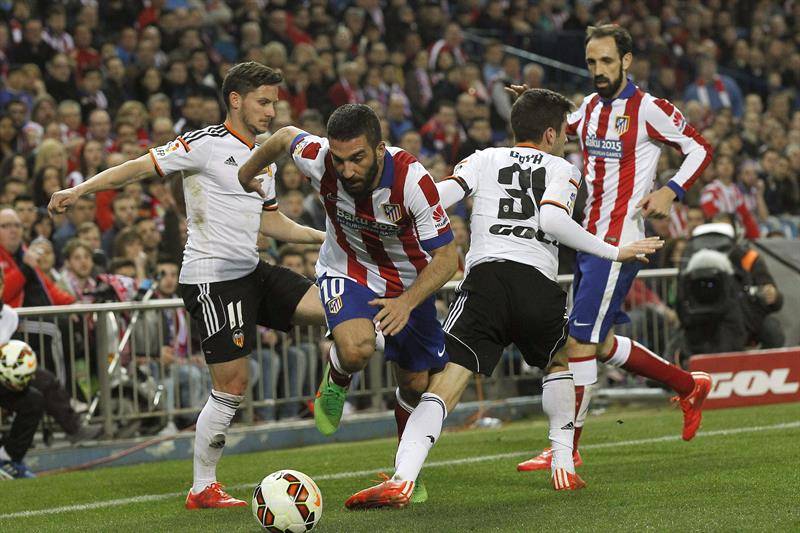 No empezó mal el Valencia con alguna jugada aislada que pudo crear mucho peligro a Moyá aunque lo hizo sin acierto. Por su parte, el Atlético de Madrid con Torres y Raúl García por Mandzukic y Griezmann sumado al regreso de los jugones, Koke y Arda, fue creciendo según transcurría el partido. El croata al banquillo, el equipo por encima de todo. Fue mejor el Atlético en los primeros 45 minutos y estuvo más rápido y más creativo a la hora de dar sentido al juego. Controló los rebotes y se anticipó bien ahogando a un Valencia que no lograba estirar el campo. Dominó bien todas las facetas de un juego trabado y muy aguerrido, por momentos demasiado.