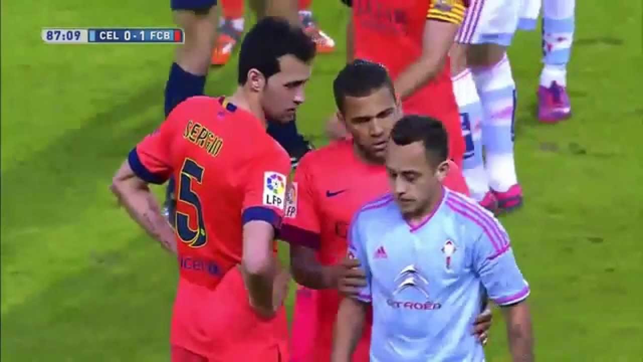 A dos minutos del final del partido en Balaídos, el árbitro Vicandi Garrido expulsó a Fabián Orellana por lanzarle un trozo de césped a Busquets en la cara.
