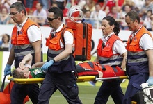 Muniain sale lesionado en camilla. | EFE