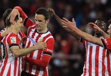 Los jugadores del Athletic felicitan a Aduriz. | EFE