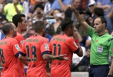 El lateral del Barcelona se ha quejado de la actitud del árbitro, que le expulsó por protestar ante el Espanyol en el derbi barcelonés.