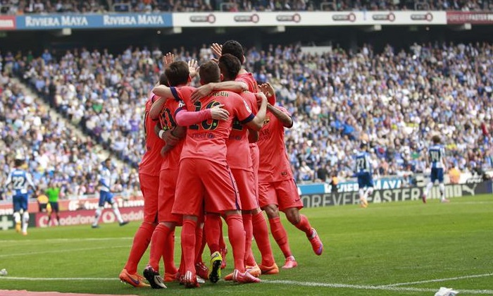 Conscientes de lo que hubiera significado una derrota en casa del vecino, los barcelonistas tomaron el mando desde el principio y sedaron cualquier conato de salida. Con el control abusivo del balón, pronto encontraron los espacios necesarios para poner en aprietos a los locales. Los centrocampistas azulgranas, entre los que entró Rafinha en lugar de Rakitic, camparon con total libertad frente a la incapacidad de un decepcionante Espanyol para robar balones.