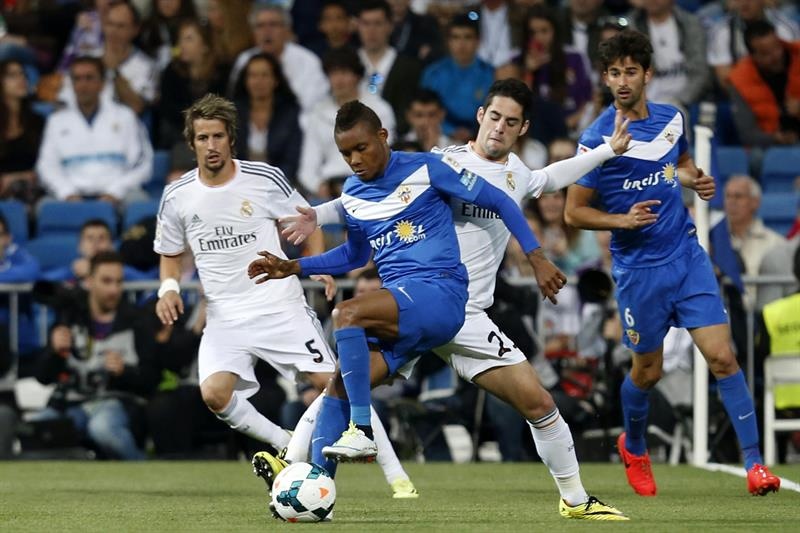 Real Madrid: Keylor Navas; Arbeloa, Varane, Pepe, Coentrao; Kroos, Isco, James; Jesé, Cristiano Ronaldo y 'Chicharito'.